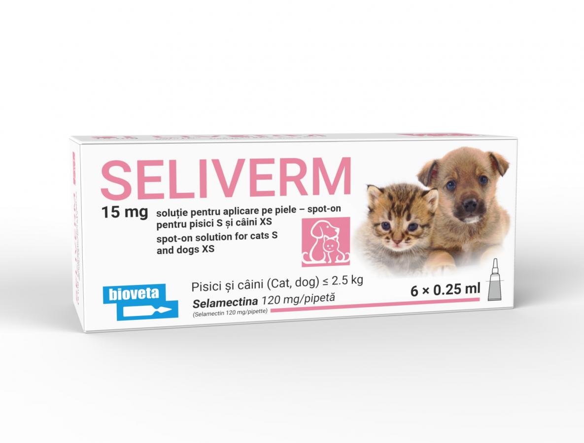 SELIVERM 15 mg soluție spot-on pentru pisici S și câini XS
