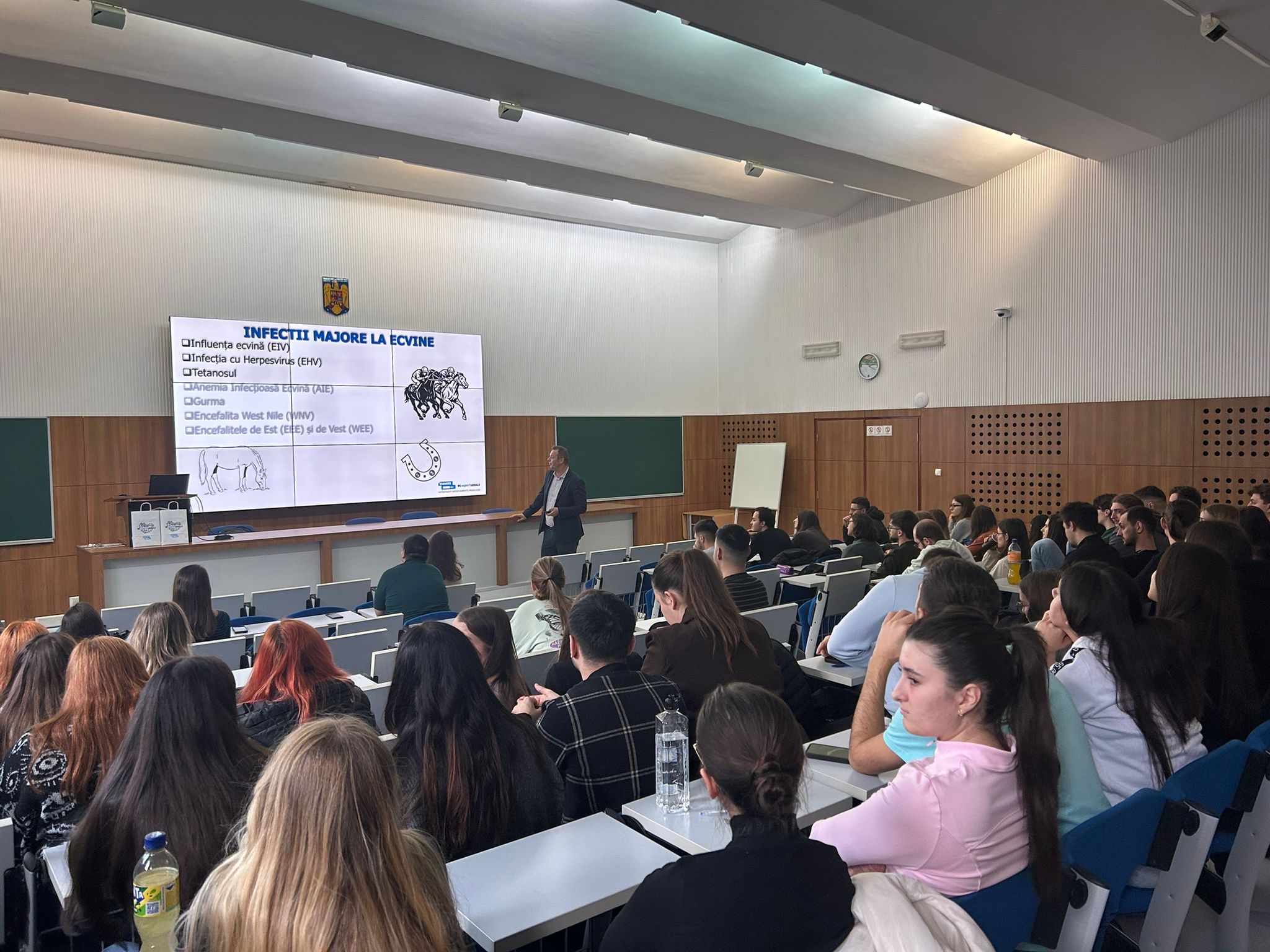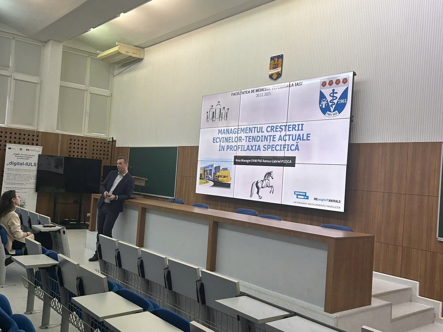 Continuând tradiția, în perioada 20-21 noiembrie 2025 s-a mai consumat încă un episod din colaborarea pe care o are compania Bioveta cu mediul academic veterinar ieșean, iar viitorii profesioniști din domeniu (români și străini) au participat la o reuniune interactivă ce a avut ca și tema principală: „Tendințe actuale în imunoprofilaxia specifică în managementul creșterii ecvinelor și a iepurilor”. Întâlnirea a fost una captivantă și de bun augur, într-o atmosferă caldă prin care am încercat să-i familiarizăm cu opțiunile existente astfel încât transferul și integrarea în mediul profesional să se facă mai lesne.