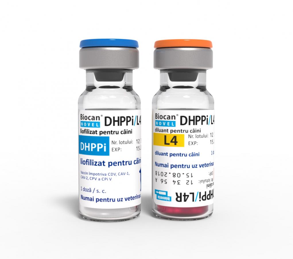 Prima pagină Gama de produse Veterinar Biocan Novel DHPPi/L4R, liofilizat și diluant pentru suspensie injectabilă pentru câini